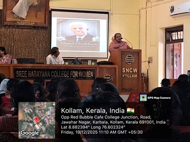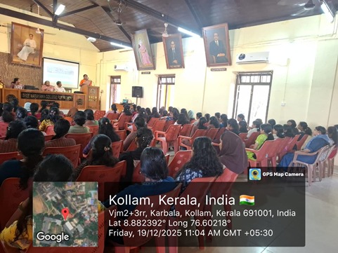 An Awareness Program on Energy Conservation (19/12/2025): A seminar on the topic “Fifth fuel- Energy Conservation’ and a work shop on LED assembly was organized by Energy Conservation (ENCON) Club and Department of Physics, Sree Narayana College for Women, Kollam as part of the National Energy Coservation Day Celebration in collaboration with Nature’s Green Guardian Foundation (NGGFn) on 19/12/2025 at Seminar Hall. The Resource person of the event was Sri. Madhu Krishnan K, Green Audit Coordinator, NGGFn and GEF State Joint Secretary.